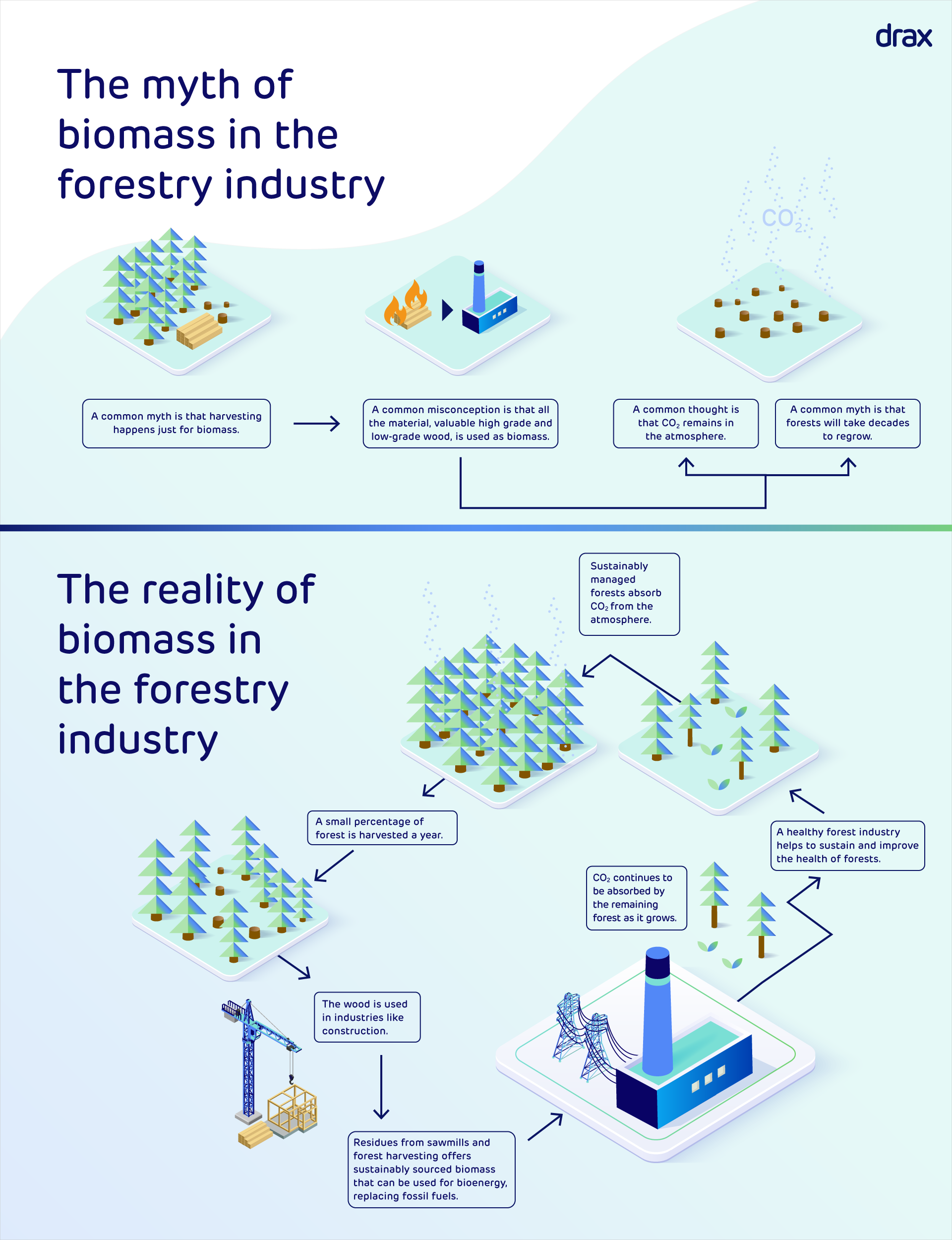 They commisoned a series of infographics to explain how their biomass process worked and debunk some of the myths around this at the same time.