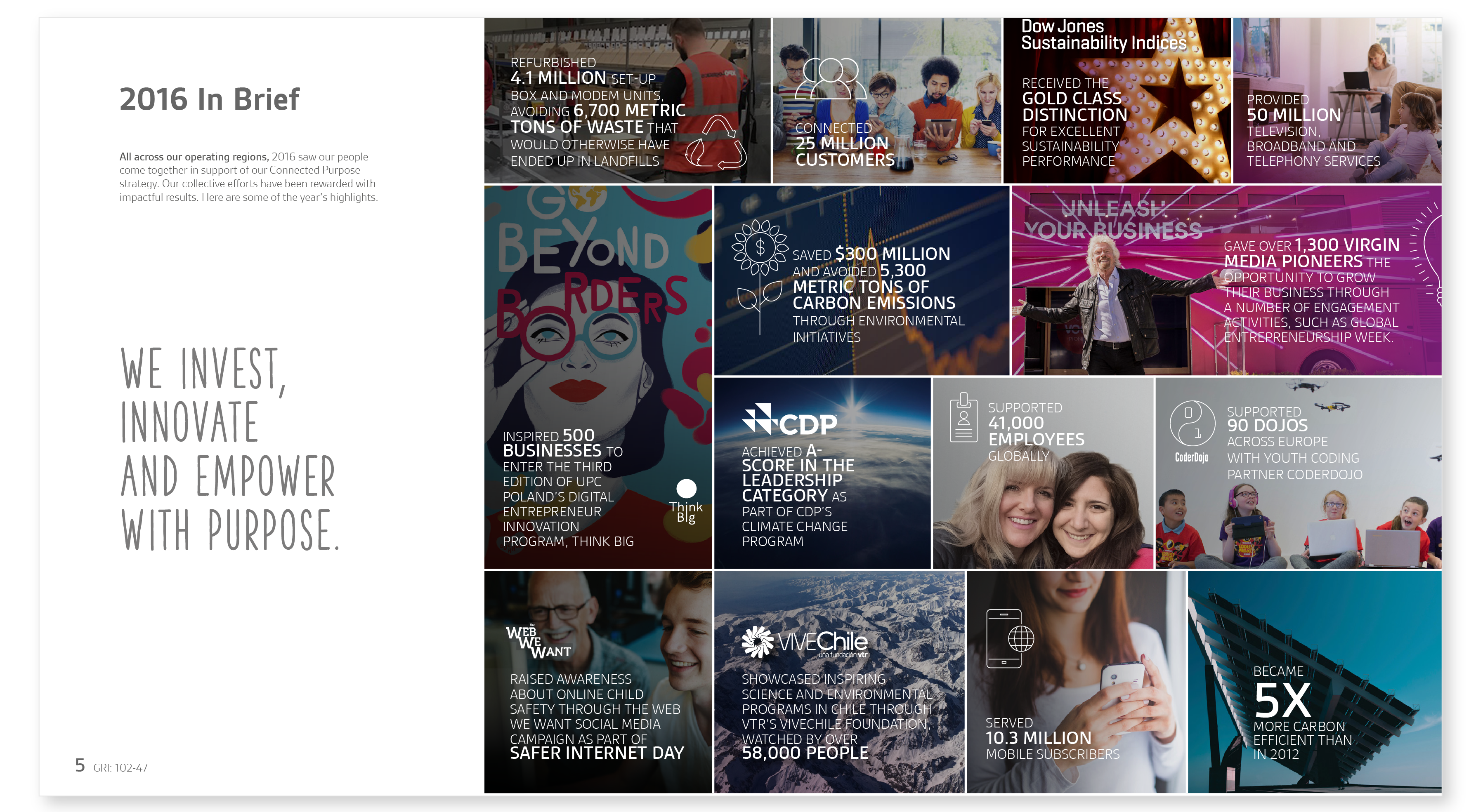 Liberty Global is a major internet provider globally. They have recently rebranded, but we had to work within the constraints of a previous very corporate looking brand and try and make it more engaging and human.